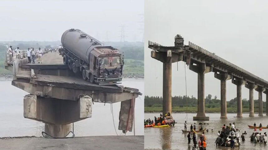 ಗುಜರಾತ್‌ನ ವಡೋದರಾ ಜಿಲ್ಲೆಯಲ್ಲಿ ಇಂದು ಬೆಳಿಗ್ಗೆ 4 ದಶಕಗಳಷ್ಟು ಹಳೆಯದಾದ ಸೇತುವೆಯ ಒಂದು ಭಾಗ ಕುಸಿದಿದೆ ಎಂದು ಅಧಿಕಾರಿಗಳು ತಿಳಿಸಿದ್ದಾರೆ. ಮಧ್ಯ ಗುಜರಾತ್ ಅನ್ನು ರಾಜ್ಯದ ಸೌರಾಷ್ಟ್ರ ಪ್ರದೇಶಕ್ಕೆ ಸಂಪರ್ಕಿಸುವ ಮಹಿಸಾಗರ್ ನದಿಯ ಮೇಲಿರುವ ಗಂಭೀರ ಸೇತುವೆಯ ಸ್ಲ್ಯಾಬ್ ಕುಸಿದು 9 ಜನರು ಸಾವನ್ನಪ್ಪಿದ್ದಾರೆ ಎಂದು ಪೊಲೀಸ್ ವರಿಷ್ಠಾಧಿಕಾರಿ (ವಡೋದರಾ ಗ್ರಾಮೀಣ) ರೋಹನ್ ಆನಂದ್ ಖಚಿತಪಡಿಸಿದ್ದಾರೆ. ಈ ಸೇತುವೆ ಜಿಲ್ಲೆಯ ಪದ್ರಾ ಪಟ್ಟಣದ ಬಳಿ ಇತ್ತು.