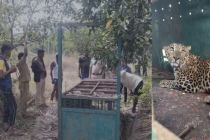 Leopard falls into a trap set by the forest department