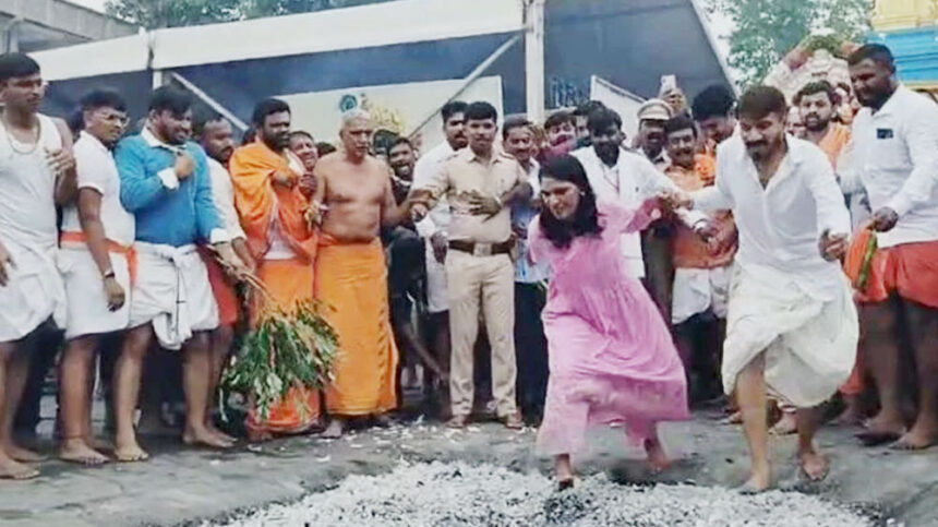 ಹಾಸನ: ಹಾಸನಾಂಬೆ ದೇವಾಲಯದ ಸಿದ್ದೇಶ್ವರ ಸ್ವಾಮಿ ಕೆಂಡೋತ್ಸವದಲ್ಲಿ ಹಾಸನದ ಜಿಲ್ಲಾಧಿಕಾರಿ ಕೆ.ಎಸ್.ಲತಾ ಕುಮಾರಿ ಭಕ್ತರ ಜೊತೆ ಕೆಂಡ ಹಾಯ್ದು ಹರಕೆ ತೀರಿಸಿಕೊಂಡಿದ್ದಾರೆ. ಈ ಕುರಿತು ಮಾತನಾಡಿದ ಜಿಲ್ಲಾಧಿಕಾರಿ, ಕಳಸ ಹೊತ್ತು ಮಹಿಳೆಯರು ಕೆಂಡ ಹಾಯುತ್ತಿರುವುದನ್ನು ನೋಡಿದೆ.
