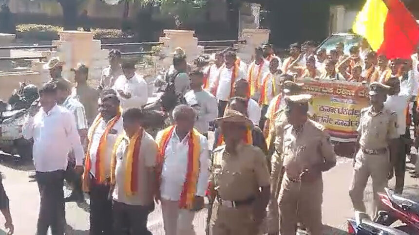 Karave activists protest demanding arrest of BJP MLA Abhaya Patil