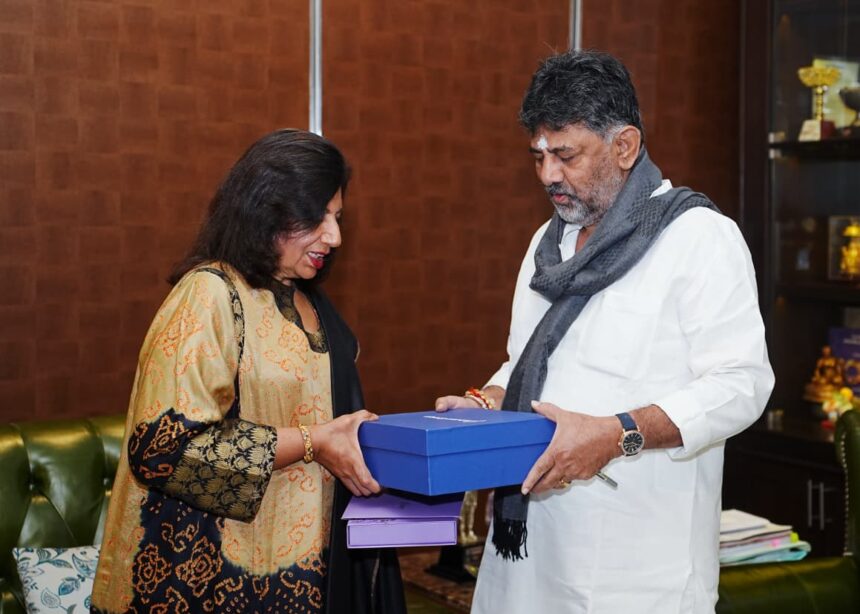 ಮಂಗಳವಾರ ಖ್ಯಾತ ಉದ್ಯಮಿ, ಬಯೋಕಾನ್ ಮುಖ್ಯಸ್ಥೆ ಕಿರಣ್ ಮಜುಂದಾರ್ ಷಾ ಅವರು ಡಿಸಿಎಂ ಡಿಕೆ ಶಿವಕುಮಾರ್ ಅವರನ್ನು ಬೆಂಗಳೂರಿನ ಸದಾಶಿವನಗರ ನಿವಾಸದಲ್ಲಿ ಮಂಗಳವಾರ ಭೇಟಿ ಮಾಡಿದರು.