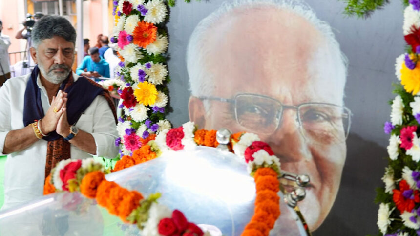ಪಾರ್ಥಿವ ಶರೀರದ ಅಂತಿಮ ದರ್ಶನ ಪಡೆದ ಡಿ.ಕೆ ಶಿವಕುಮಾರ್ :