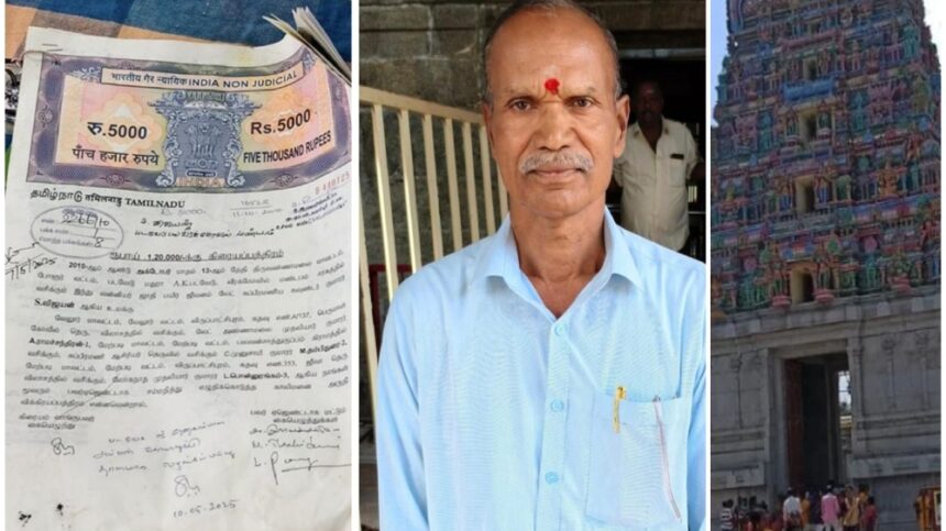 ತಮಿಳುನಾಡಿನ ತಿರುವಣ್ಣಾಮಲೈ ಜಿಲ್ಲೆಯ ಅರಲುಮಿಗು ರೇಣುಗುಂಬಲ ಅಮ್ಮಾನ್ ದೇವಾಲಯದ ಹುಂಡಿಯಲ್ಲಿ ಆಸ್ತಿ ಪತ್ರ ಪತ್ತೆಯಾಗಿದ್ದು ಎಲ್ಲರೂ ಮೂಕ ವಿಸ್ಮಿತರಾಗಿದ್ದರು . ಹೌದು ಬರೋಬ್ಬರಿ 4 ಕೋಟಿ ಮೌಲ್ಯದ ಆಸ್ತಿಯ ದಾಖಲೆ ಪತ್ರ ನೋಡಿ ದೇವಸ್ಥಾನದ ಸಿಬ್ಬಂದಿ ಕಂಗಾಲಾಗಿದ್ದರು .
