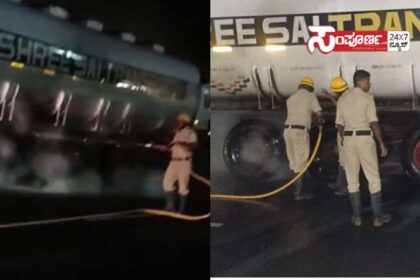 ಸ್ಪಿರಿಟ್ ಲಾರಿಯ ಟೈಯರ್ ಬ್ಲಾಸ್ಟ್ – ತಪ್ಪಿದ ಭಾರೀ ಅನಾಹುತ