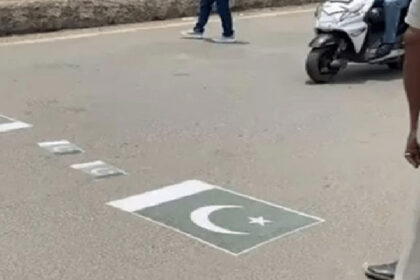 Protest by pasting Pakistani flag on road